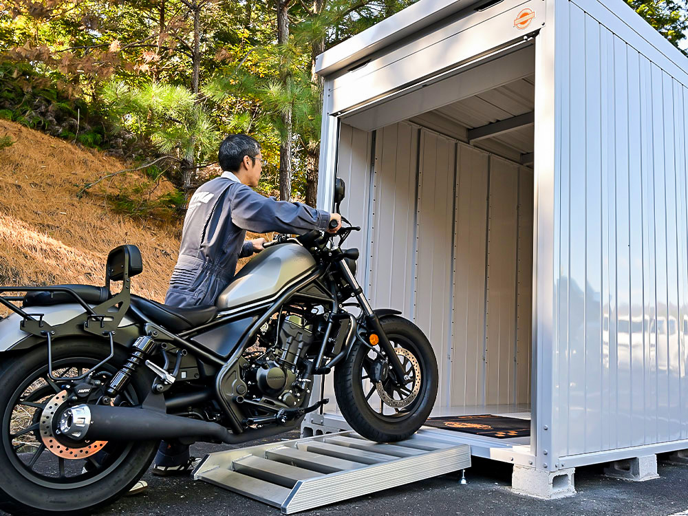 屋内型バイク専用ガレージを設置・運営するための土地・物件を仕入れ、カスタマイズした保管空間を提供。